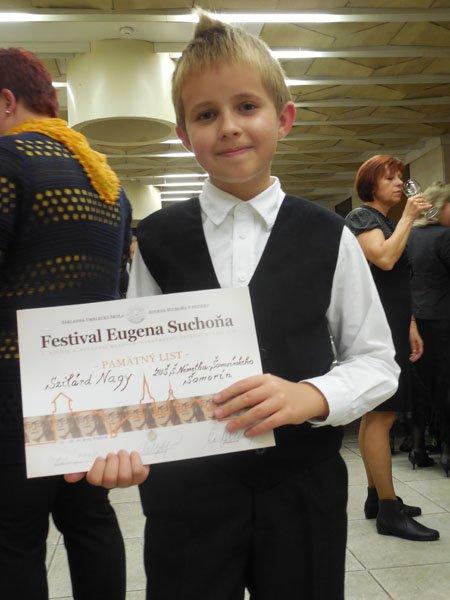 Festival Eugena Suchoňa - X.ročník stretnutia mladých interpretov,víťazov súťaží ZUŠ v Pezinku,kde účinkoval a zároveň získal cenu riaditeľky ZUŠ žiak Mgr.art.Eriky Domsitzovej Szilárd Nagy