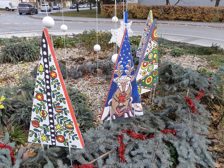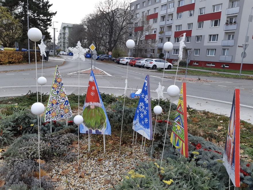 Žiaci výtvarného odboru sa postarali o adventnú výzdobu kruhového objazdu na Čilistovskej ulici.