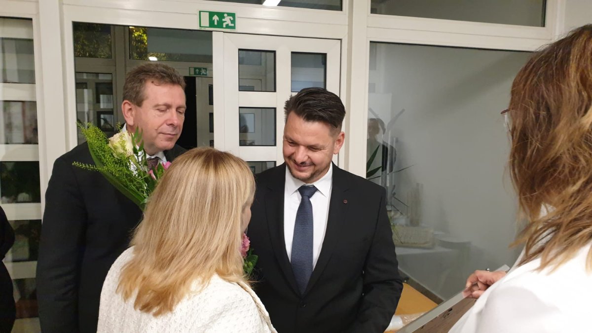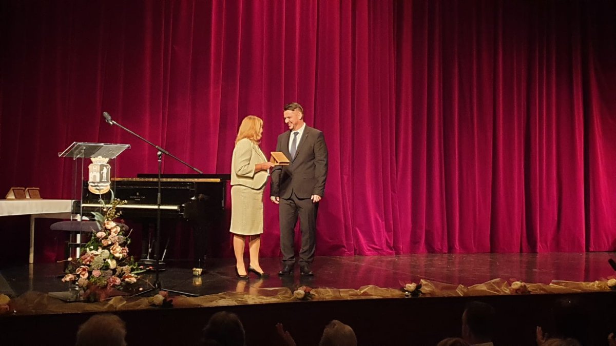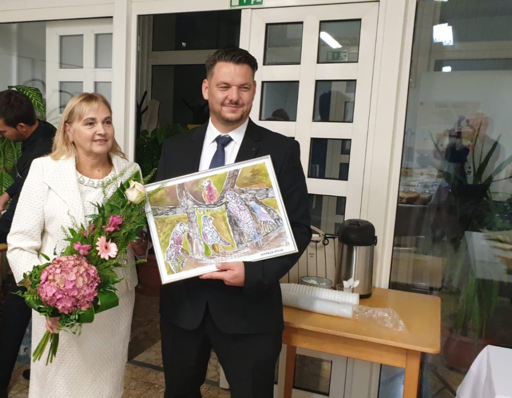 Riaditeľ Varga Bence odovzdal plaketu na znak ďalšej spolupráce riaditeľke PaedDr.Irene Szűcsovej.